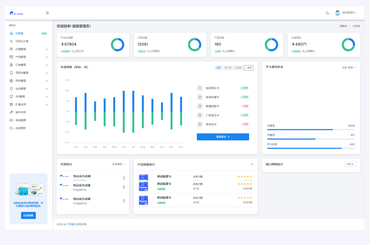 可以轻松了解到新增代理数据,代理总数,代理的分布等等信息